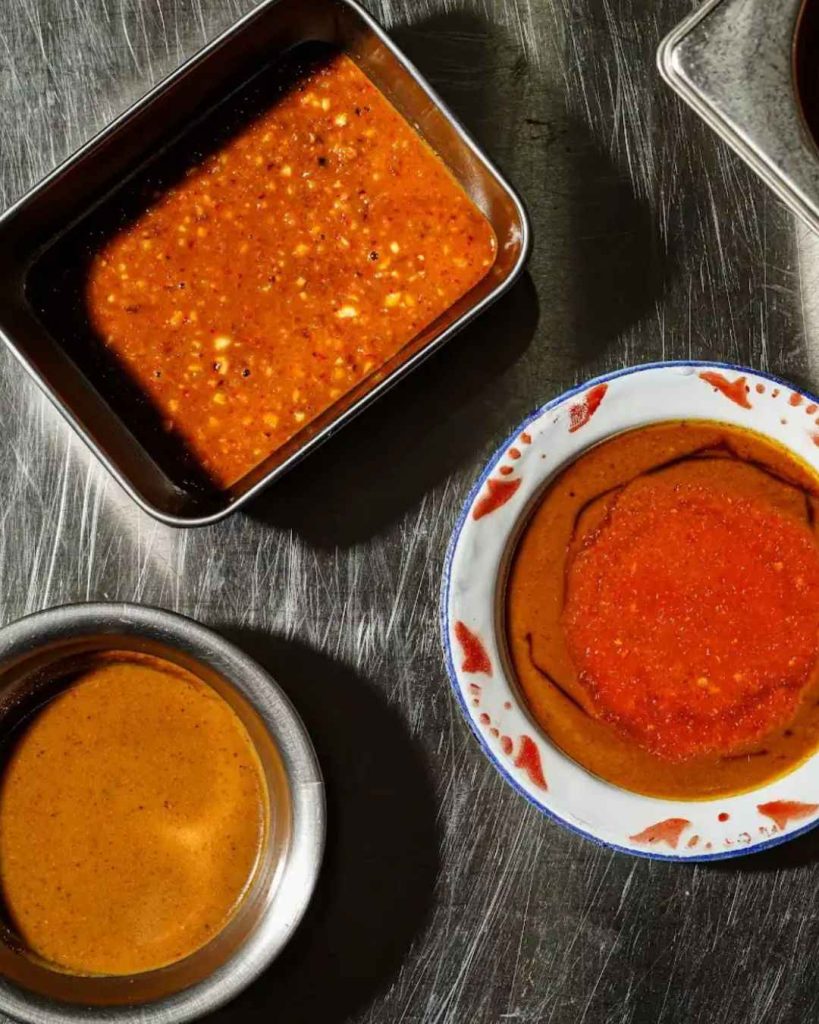 – Celupan sambal kacang & bumbu asinan sayur